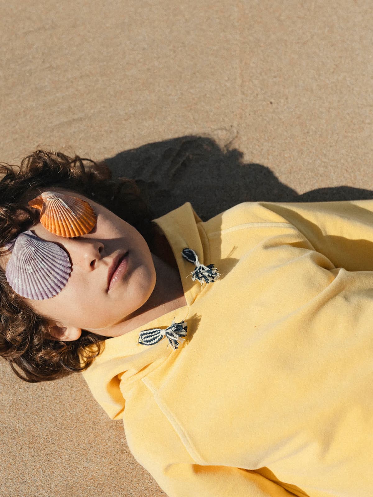 Bavlnená fleecová mikina s kapucňou a nášivkami na rukávoch. Predné klokankové vrecko s vyšívaným logom Búho. Raglánový rukáv.